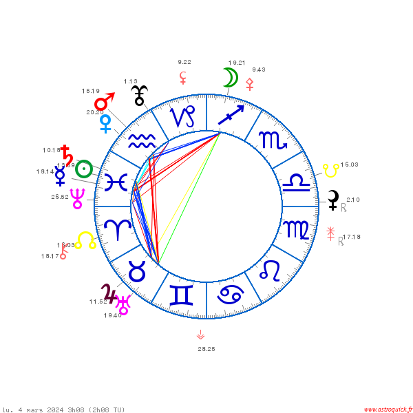 Jupiter a formé un mauvais petit demi-carré à de 45° à Neptune le 7 juillet dernier de façon exacte. Depuis cette date, ce conflit entre Jupiter et Neptune perdure jusqu’à un nouvel aspect négatif de 45° le lundi 4 mars prochain. Cette période englobe assez bien toutes les inondations des derniers mois, notamment dans le nord de la France.