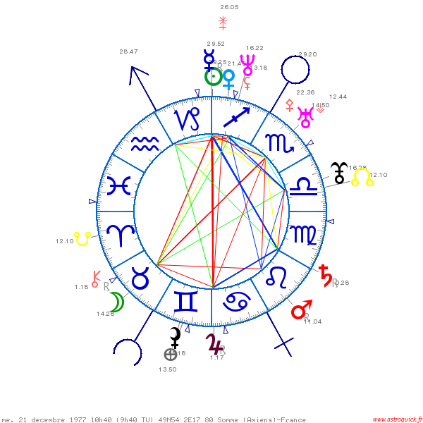 Carte du ciel d’Emmanuel Macron, né le 21 décembre 1977 à Amiens à 10h40 :